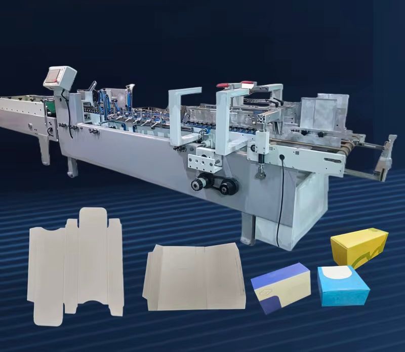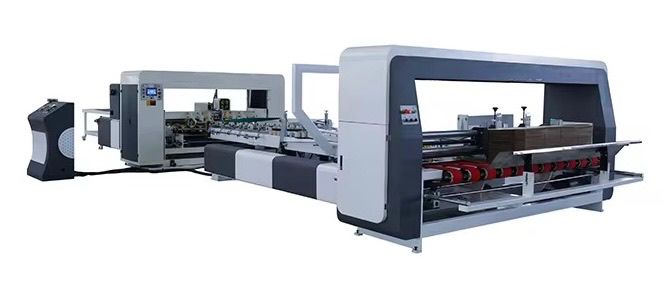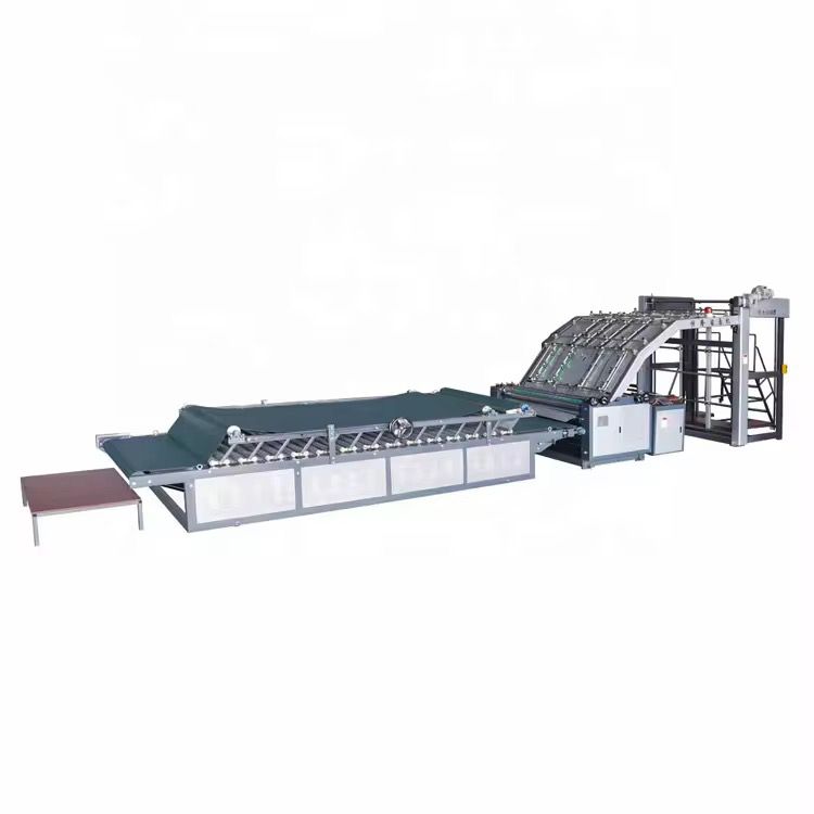 Automatická lepiaca linka na klopové krabice. Zabezpečuje rýchle, presné a efektívne lepenie pri veľkých objemoch výroby.